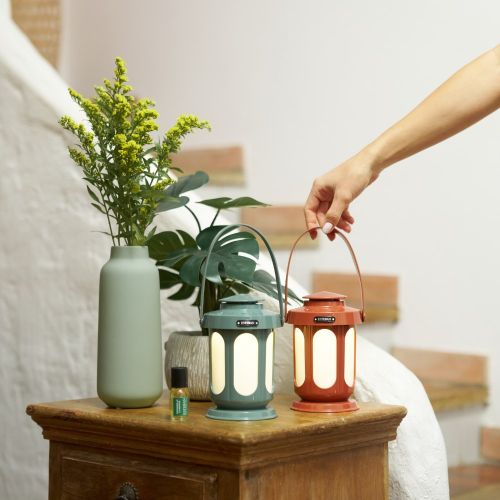 El Difusor Lantern Edition – Terracotta destaca por su diseño decorativo y compacto, con una altura de 15,4 cm y un diámetro de 9,1 cm. Incorpora dos ambientes de iluminación, suave o intenso, que ayudan a crear una atmósfera acogedora y relajante tanto de día como de noche.