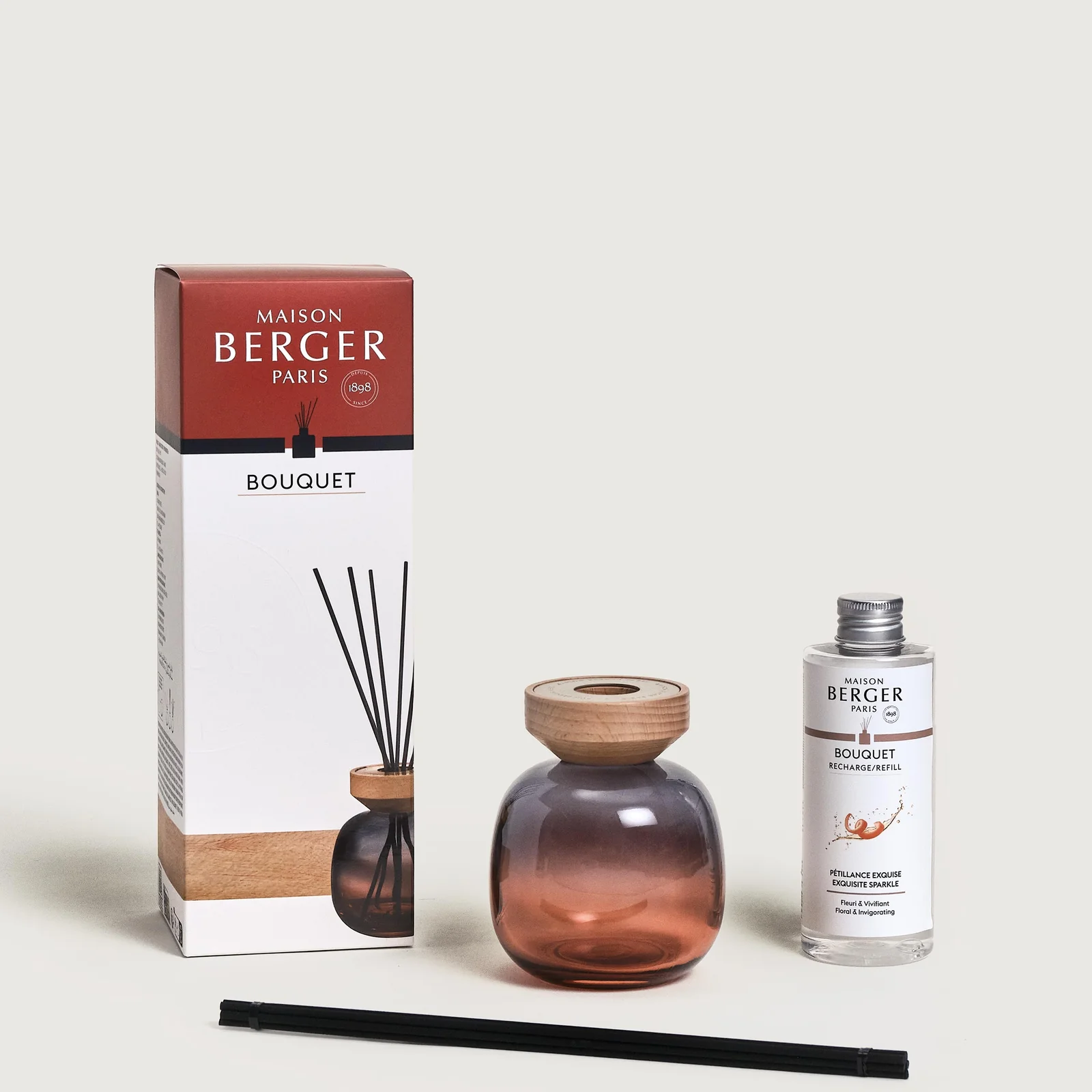 El Mikado Gris Rouge Bois Clair con recarga de Pétillance Exquise es ideal tanto para uso personal como para regalar. Combina diseño, funcionalidad y una fragancia dulce y envolvente que transforma cualquier espacio en un entorno elegante, cálido y sofisticado, aportando bienestar y armonía al hogar.